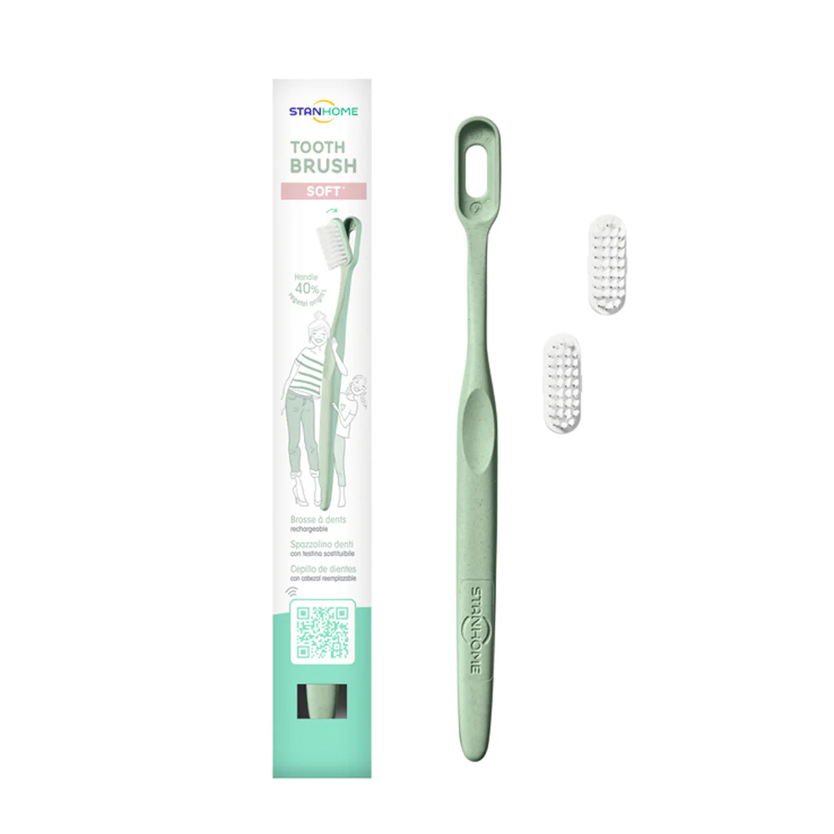 Ne vous prenez pas la tête, prenez la nôtre ! Et oui, je permets de recharger votre brosse à dents ! Avec ma coupe plate et mes filaments souples et arrondis d'origine naturelle, j'assure un nettoyage tout en douceur de vos dents et je prends soin de vos gencives, même les plus sensibles. Mon gratte-langue intégré permet de garder une meilleure hygiène buccale.
